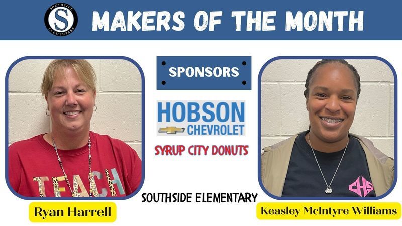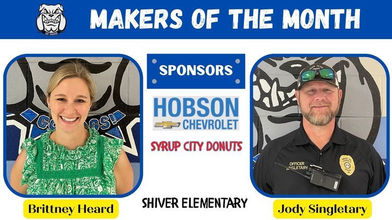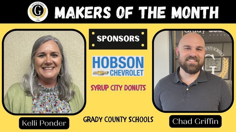 Each month two employees from each school are chosen to be recognized as Grady County Schools' Makers of the Month. For the month of April, selected employees received gifts from Hobson Chevrolet and Syrup City Donuts of Cairo. Congratulations Makers of the Month and a big THANK YOU to our sponsors!